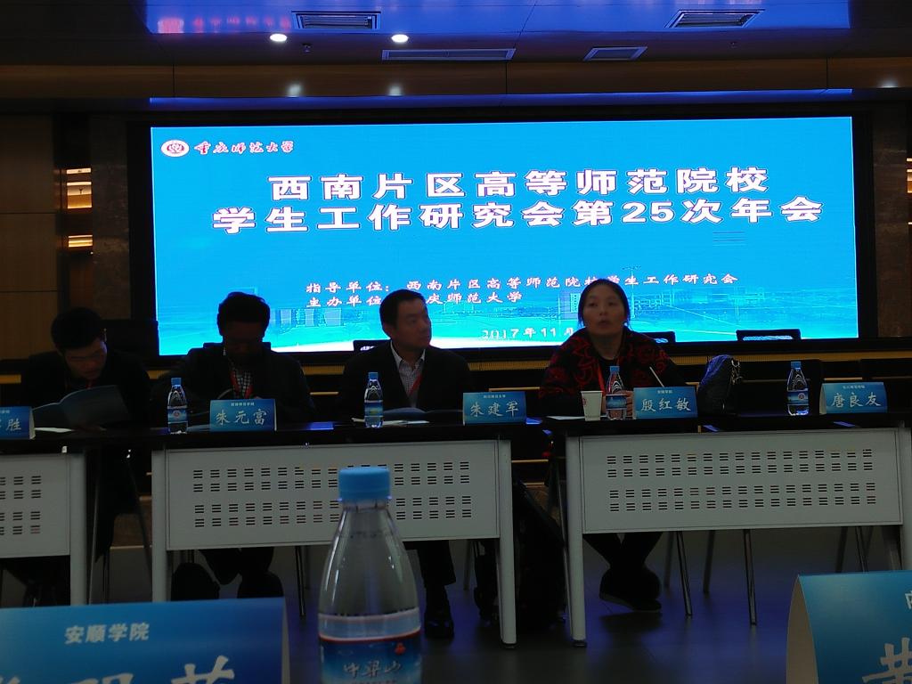 2017年11月9日至11日,西南片区高等师范院校学生工作研究会第25次年会在重庆师范大学举行。我校学工部殷红敏、张明莉两位同志应邀参加了会议,与会人员听取了冯刚(北京师范大学思想政治工作研究院院长)、曾礼(中共重庆市党委党的十九大精神宣讲团专家、重庆师范大学党委书记)、夏晓虹(中国高教学会辅导员工作研究会秘书处办公室主任)三名教育界思政专家的专题报告及六所大学代表的主旨发言。分组讨论时,我校学工部部长殷红敏担任第三组召集人,组织与会人员围绕“高校辅导员队伍专业化职业化实践路径研究”进行了专题讨论。